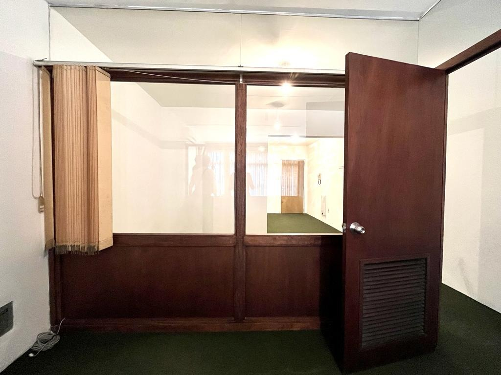 Cuenta con divisiones en madera y vidrio con cortinas bandalux, aire acondicionado y caja fuerte empotrada, pisos con moquette,puerta blindada, baño completo con placard, cocina definida con placares sobre y bajo mesada.